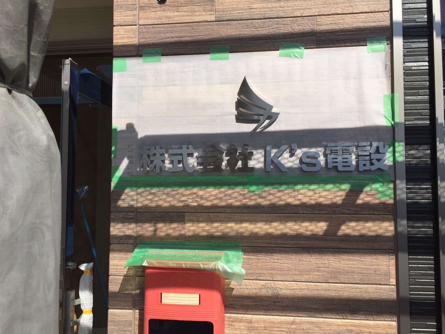 外観はほとんど完成しこのように会社のロゴ付きで社名も入りましたよ!